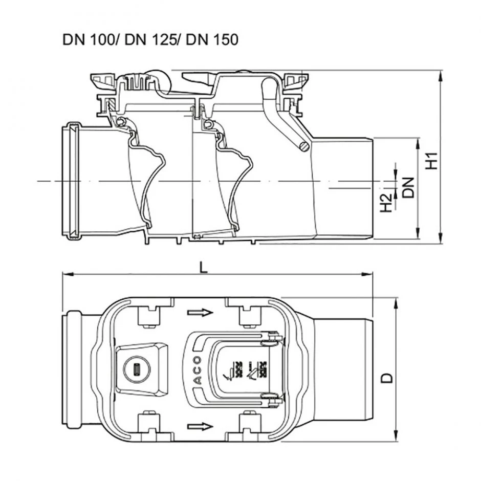 Die Ausführungen DN 100 – DN 150 haben zudem eine große Reinigungs- und Wartungsöffnung und sind kamerabefahrbar.