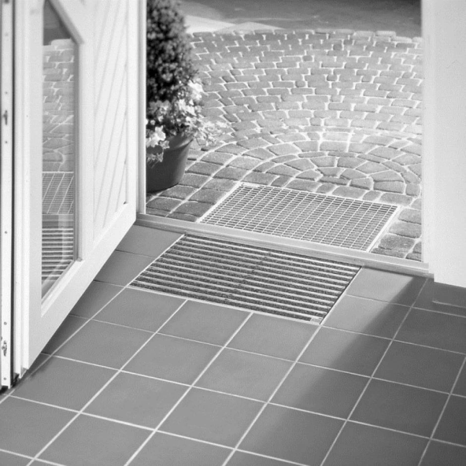 Das ACO Schuhabstreifersystem für innen wird Ihnen als Komplettsystem-Set geliefert. Es enthält alles was Sie benötigen, um den Schuhabstreifer ebenerdig in den Boden einzubauen. Der Schuhabstreifer kommt mit einem Aluminium Winkelrahmen, welcher in den Boden eingelegt wird und dann nur noch mit dem von Ihnen gewählten Schuhabstreifer abgedeckt wird.