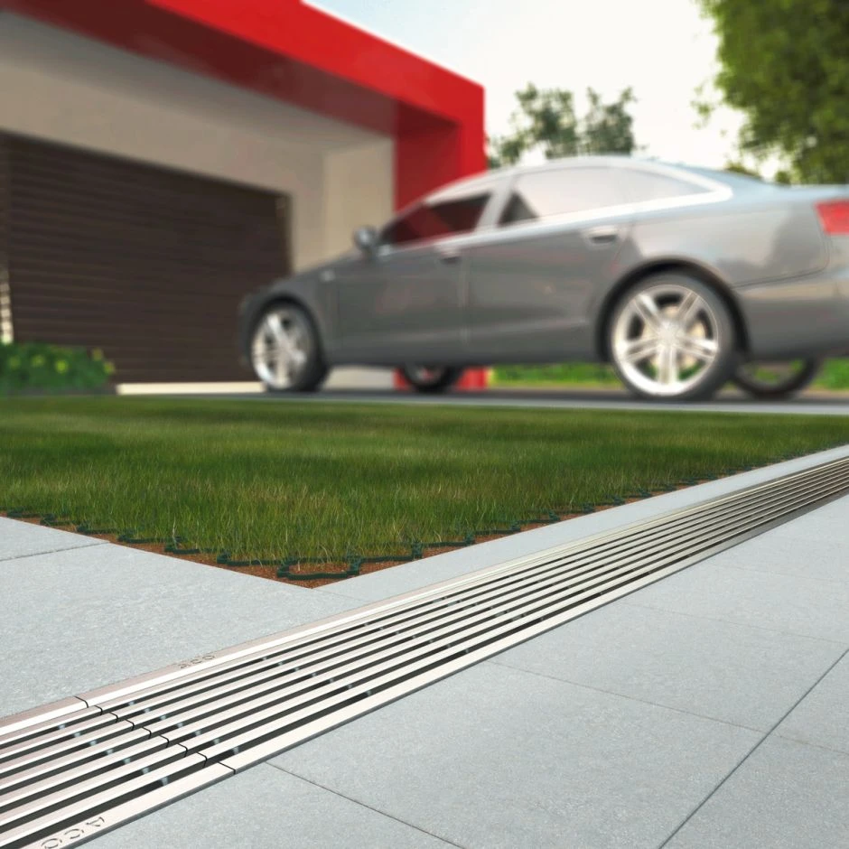 Der ACO Längsstabrost aus Edelstahl ist nicht nur ein simpler Funktionserfüller sondern verbindet Funktionalität und Design auf höchstem Niveau. Die schmalen Dreikantprofile in Verbindung mit der gebürsteten Oberfläche geben ihm ein elegantes Erscheinungsbild. Weiter ist der Längsstabrost PKW befahrbar und sowohl für die Hexaline als auch die Euroline Rinne geeignet.