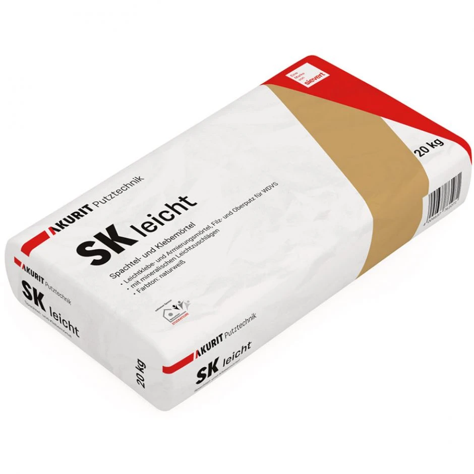 AKURIT SK leicht ist für Innen und Außenbereiche und für die Anwendung im Sockelbereich geeignet. Außerdem ist SK leicht auch für die gewebearmierte Spachtelung und zum Planspachteln unebener Untergründe geeignet. Der Klebemörtel mit mineralischen Leichtzuschlägen hat ein sehr gutes Haftvermögen und eine hohe Ergiebigkeit. Er ist leicht, geschmeidig verarbeitbar, hydrophobiert und diffusionsoffen. AKURIT SK leicht ist für fast alle Mauerwerke geeignet.