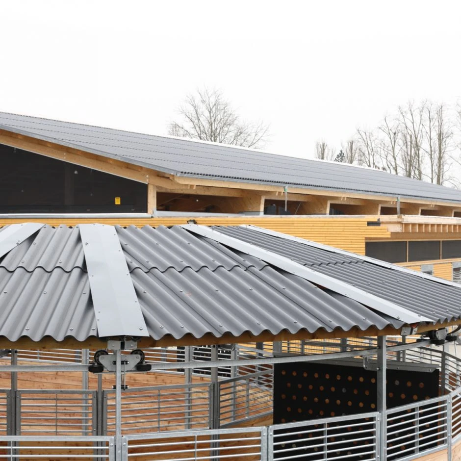 Die Wellplatten von Eternit sind die Klassiker unter der Bedeckung von landwirtschaftlichen Bauten und Industrie- und Gewerbehallen. Die Wellplatten haben 5 Wellen pro Platte und sind erhältlich in verschiedenen Längen. Die großformatigen Wellplatten sind aus diffusionsoffenem Faserzement und korrosionsbeständig. Sie eignen sich so besonders bei größeren Dachflächen und können nur in der Deckrichtung von rechts nach links verlegt werden. Die Wellplatten haben einen Eckenschnitt für 200 mm Höhenüberdeckung und sind somit bereits vorgeschnitten zur großflächigen Verlegung.