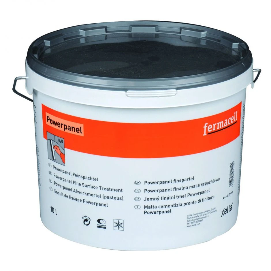 fermacell Powerpanel Feinspachtel ist ein Disperisions Leichtspachtel für zementäre Untergründe im Innen- und Außenbereich. Er ist speziell zur Verwendung mit dem fermacell Powerpanel System verwendet werden, kann aber auch in jeglicher anderer Konstruktionsart verwendet werden. Er ist auch geeignet für Feuchträume. Die Feinspachtelmasse eignet sich ausgezeichnet, um Fugen oder Schraubköpfe bei Decken-, Wand- oder Bodenkonstruktionen zu überspachteln. Er kann außerdem zum Glätten, Füllen und Egalisieren von Untergrund verwendet werden. Der Feinputz vermittelt eine qualitativ sehr hohe Optik mit einer Qualitätsstufe von bis zu Q4.