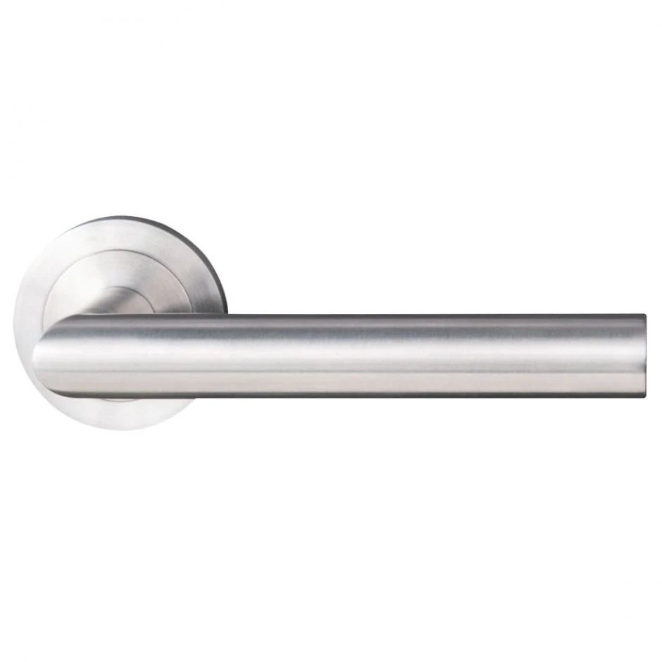 Die Wechselgarnitur Ferrara Edelstahl matt von Griffwelt besteht aus einem Türknopf für außen und einem Türdrücker für innen. Dieser passt ideal zu vielen Einrichtungsstilen, ganz gleich ob klassisch oder modern.