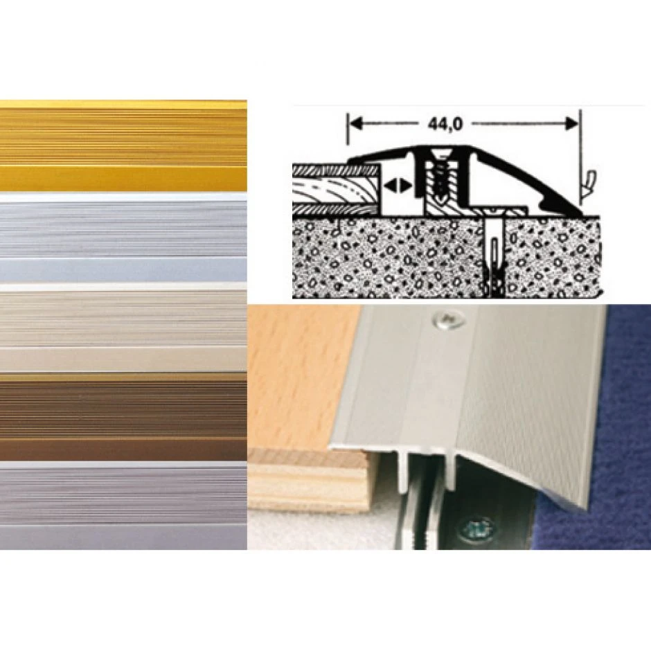 Das Anpassungsprofil Typ 386 wird dort eingesetzt wo ein Übergang zu einer niedrigeren Fläche geschaffen werden soll. Es ist geeignet für Bodenbeläge zwischen 7 und 15 mm Höhe. Das Profil wird verschraubt und ist daher genau justierbar. Es besteht aus eloxiertem Aluminium mit einer Dekorbeschichtung und ist erhältlich in den Längen 0,9 m und 1,0 m.