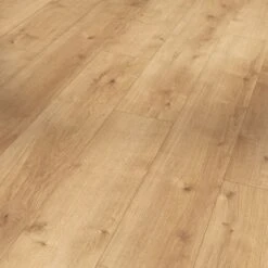 Durch den 3-Schicht-Aufbau, bestehend aus einer 3,5 mm Nutzschicht aus Eiche, einer Mittellage aus Fichtenholz Stäbchen und einem Rückzugfurnier aus Nadelholz, ist der Boden enorm stabil und robust. Die Nutzschicht kann mehrfach abgeschliffen werden um die Schönheit des Bodens auch auf Dauer zu erhalten. Die Oberfläche ist mit naturaLin plus Naturöl behandelt, was dem Boden ein noch natürlicher wirkendes Aussehen gibt. Der Boden hat ein 1-Stab Landhausdielen Design mit einer lebhaften Maserung des Holzes. Die umlaufende Fase 4V auf allen 4 Seiten betont den individuellen Charakter.