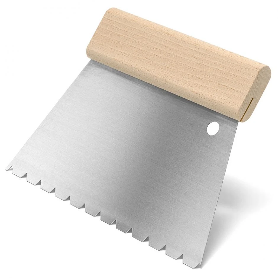 Die HARO Spezialzahnspachtel L eignet sich hervorragend zum Auftragen von Parkettkleber bei Verklebung von 3-Schicht-Parkett.