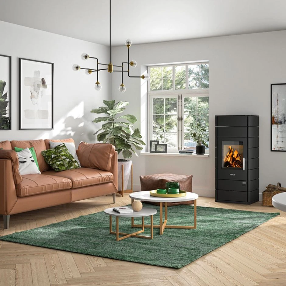 Die Nennwärmeleistung des Ofens liegt bei 6,0 kW, wodurch Räume mit bis zu 124 m³ problemlos beheizt werden können. Der Holzofen hat eine profilierte Feuerraumauskleidung mit hoher Festigkeit, diese fördert eine saubere Verbrennung.