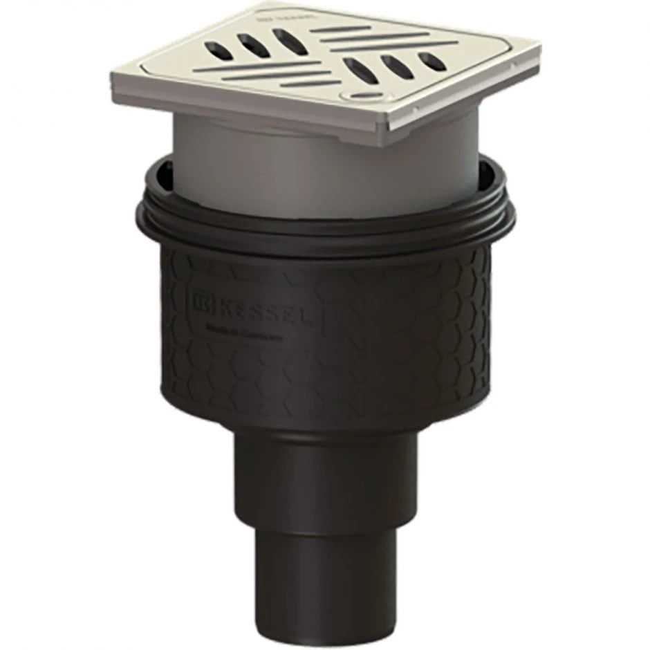 Das KESSEL Baukastensystem bietet passende Lösungen für die Bodenentwässerung. Der komplette Objektablauf zum Einbau in den Boden besteht aus dem Grundkörper Ecoguss mit Anschlussrand und senkrechtem Auslauf, und dem Kunststoffaufsatzstück mit dem 120 x 120 mm Designrost Kessel oder dem 138 x 138 mm großen Schlitzrost.
