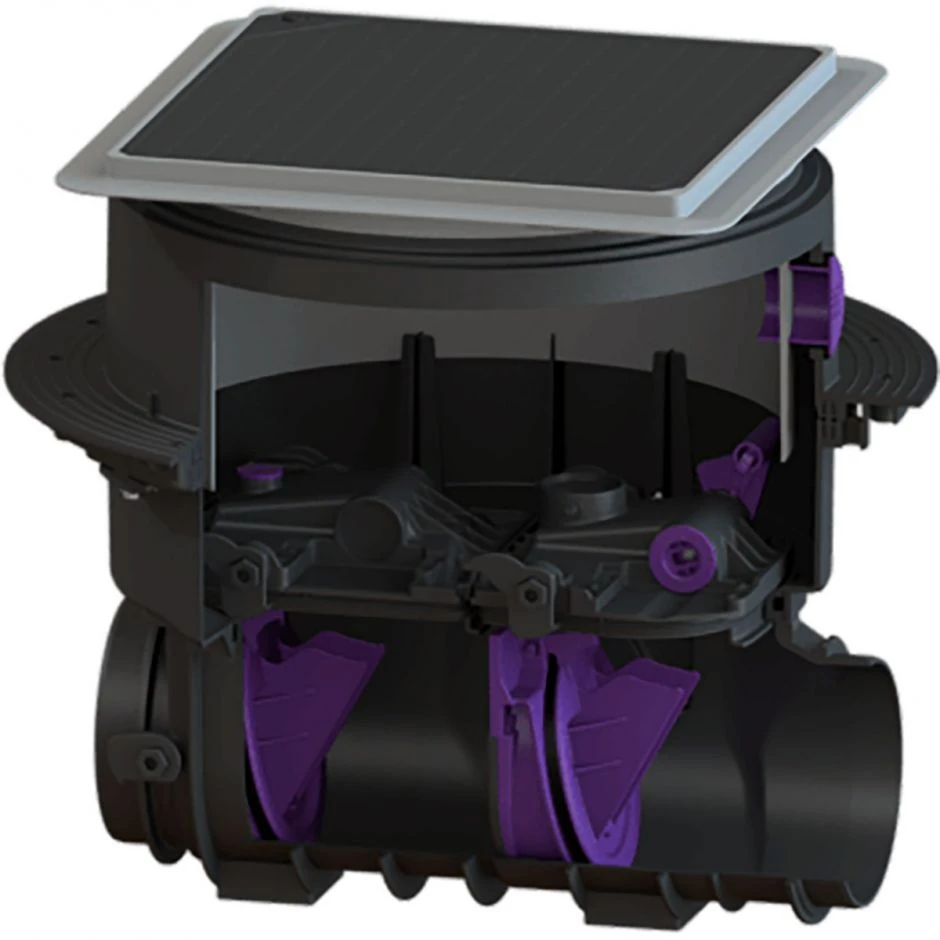 Der Rückstaudoppelverschluss 73000.10S für fäkalienfreies Abwasser aus Kunststoff ist mit einem teleskopischen Aufsatzstück für einen stufenlosen Höhen- und Niveauausgleich ausgestattet. Die beiden Klappen schließen selbsttätig, wobei eine davon als handverriegelbarer Notverschluss dient.