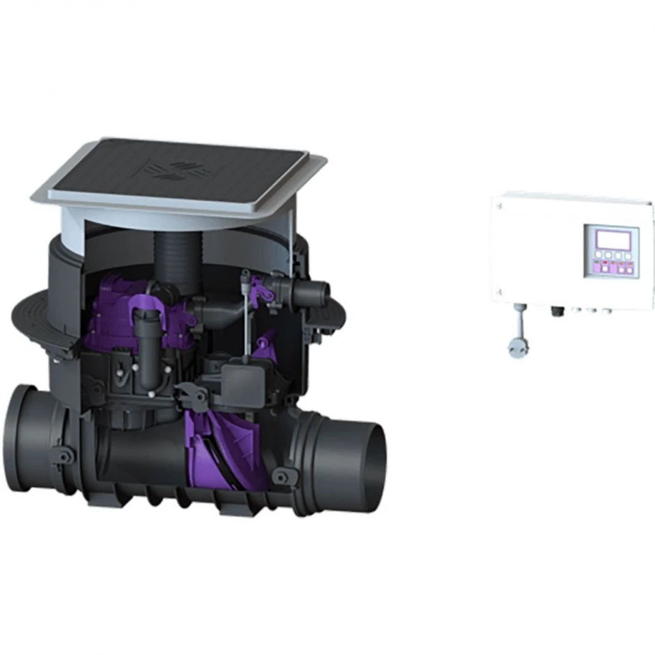 Die Innovation von KESSEL ist die Rückstauhebeanlage Ecolift (21100S, 21125S, 21150S, 21200S). Sie ist Rückstauverschluss und Hebeanlage in einem.Dadurch, dass sie das natürliche Gefälle zum Kanal für die Abwasserentsorgung nutzt, ist sie eine günstige Möglichkeit im Vergleich zu einer reinen Hebeanlage. Denn durch den Einbau dieser Kombinationsanlage entfallen einige Arbeitsschritte, die üblicherweise für die Montage einer Hebeanlage und einer Rückstausicherung notwendig sind und auch die Wartung und Reinigung erfolgen in einem Arbeitsgang. Ecolift für fäkalienhaltiges und fäkalienfreies Abwasser wird in die Bodenplatte eingebaut und hat eine schwarze Abdeckplatte. Das teleskopische Aufsatzstück kann stufenlos in der Höhe und im Niveau ausgeglichen werden. Es ist mit einer Anschlussbohrung mit Dichtung für eine Druckleitung DA 40 und für ein Kabelleerrohr DN 50 ausgestattet. Die Hebefunktion erfolgt nur bei einem Rückstau mit einer Pumpe mit Schneidsystem. Die Rückstauklappe wird motorisch verschlossen.