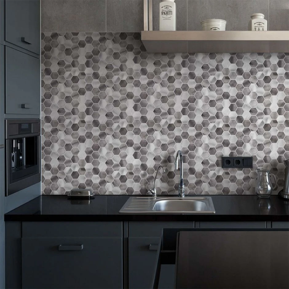 Die Fliesen in Bienenwabenoptik im Format 31,5×32,5 mm bieten einen ansprechenden Retrolook und passen sowohl in rustikale als auch in moderne Wohnräume.