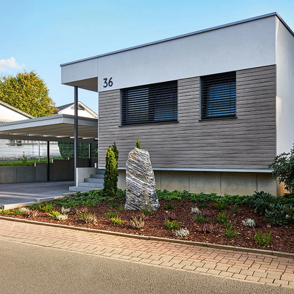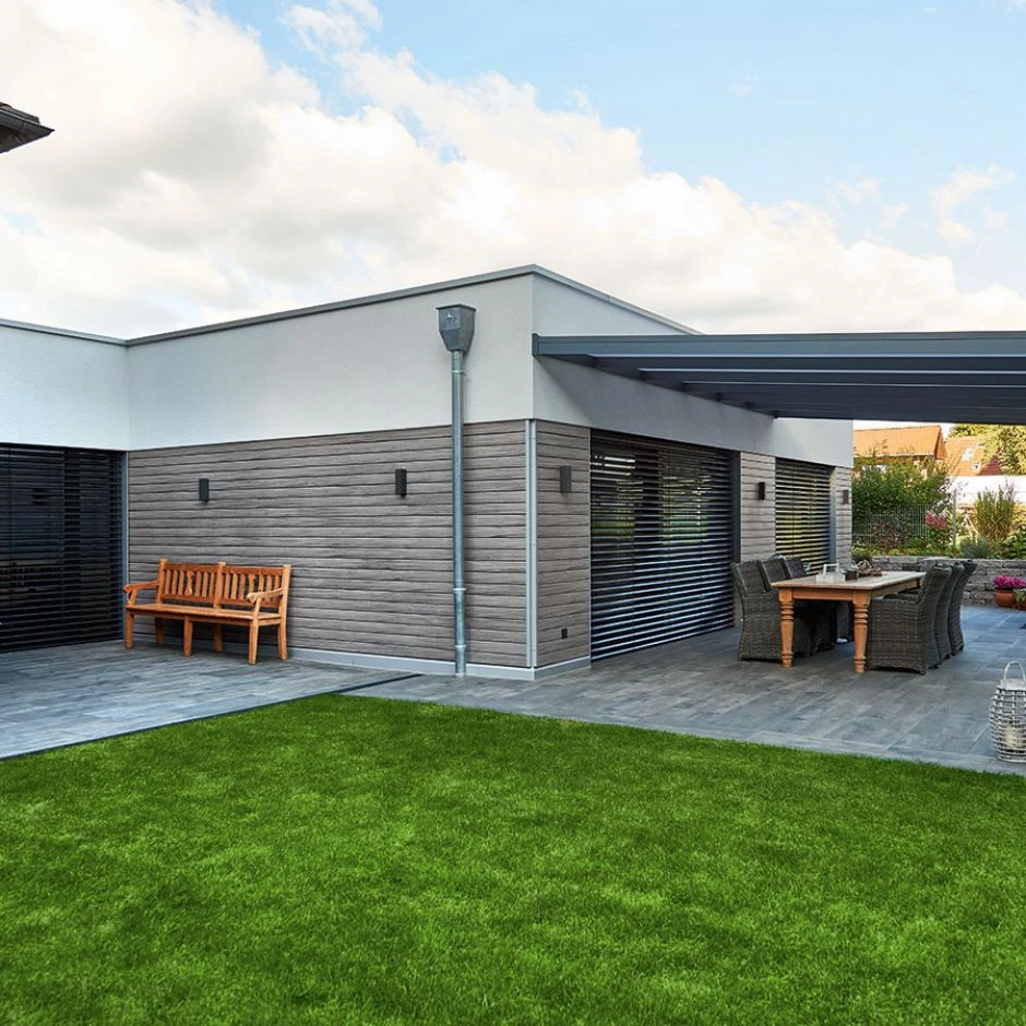 Die NATURinFORM WPC Fassadenverkleidung DIE GESTALTENDE besteht aus einem recycelbaren Holz-Verbundwerkstoff (WPC). Die Fassadenprofile haben eine edle, leicht gebürstete Optik und eine individuelle Holzmaserung. Sie sind langlebig, leicht zu reinigen, witterungsstabil und können sowohl waagerecht als auch senkrecht montiert werden.