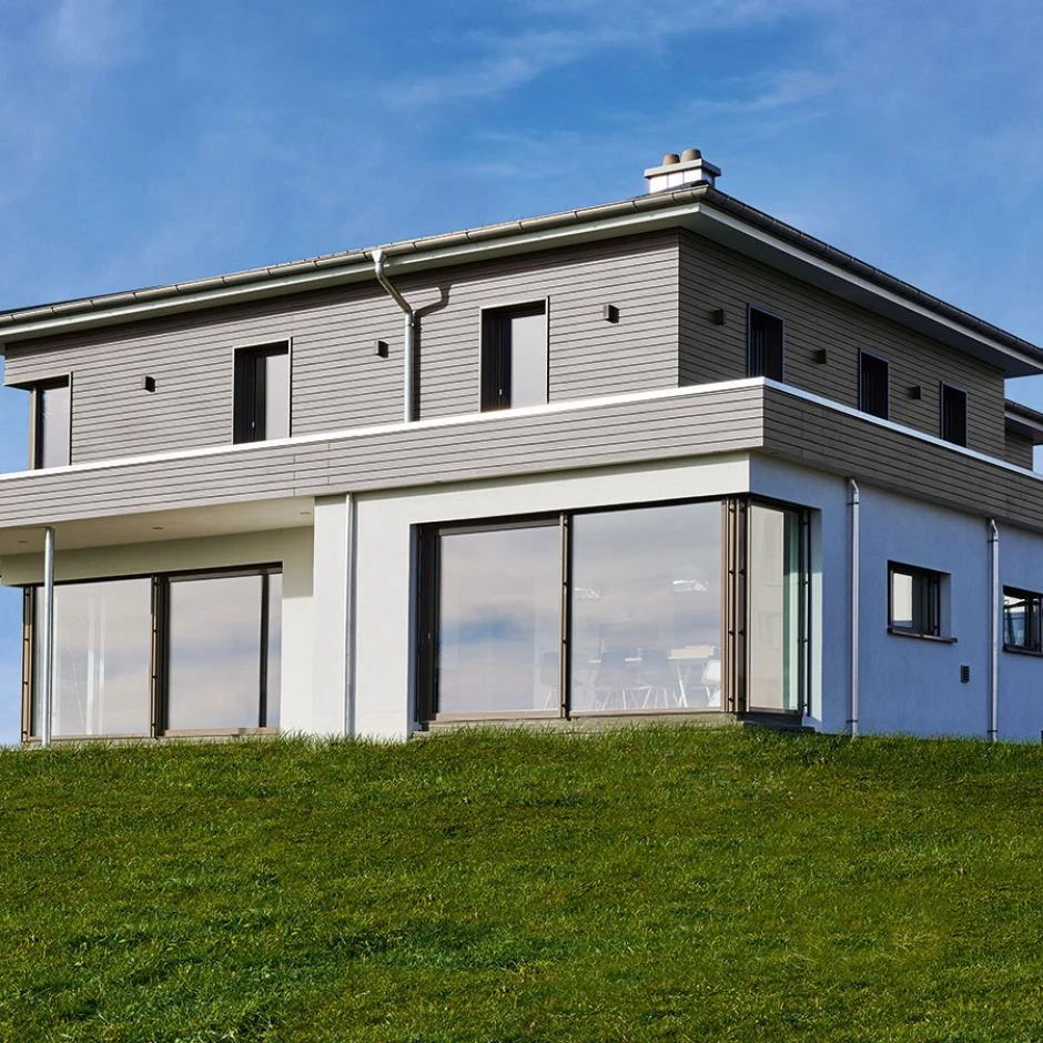 - Schutz gegen Feuchtigkeit und Regen durch hinterlüftete Fassade