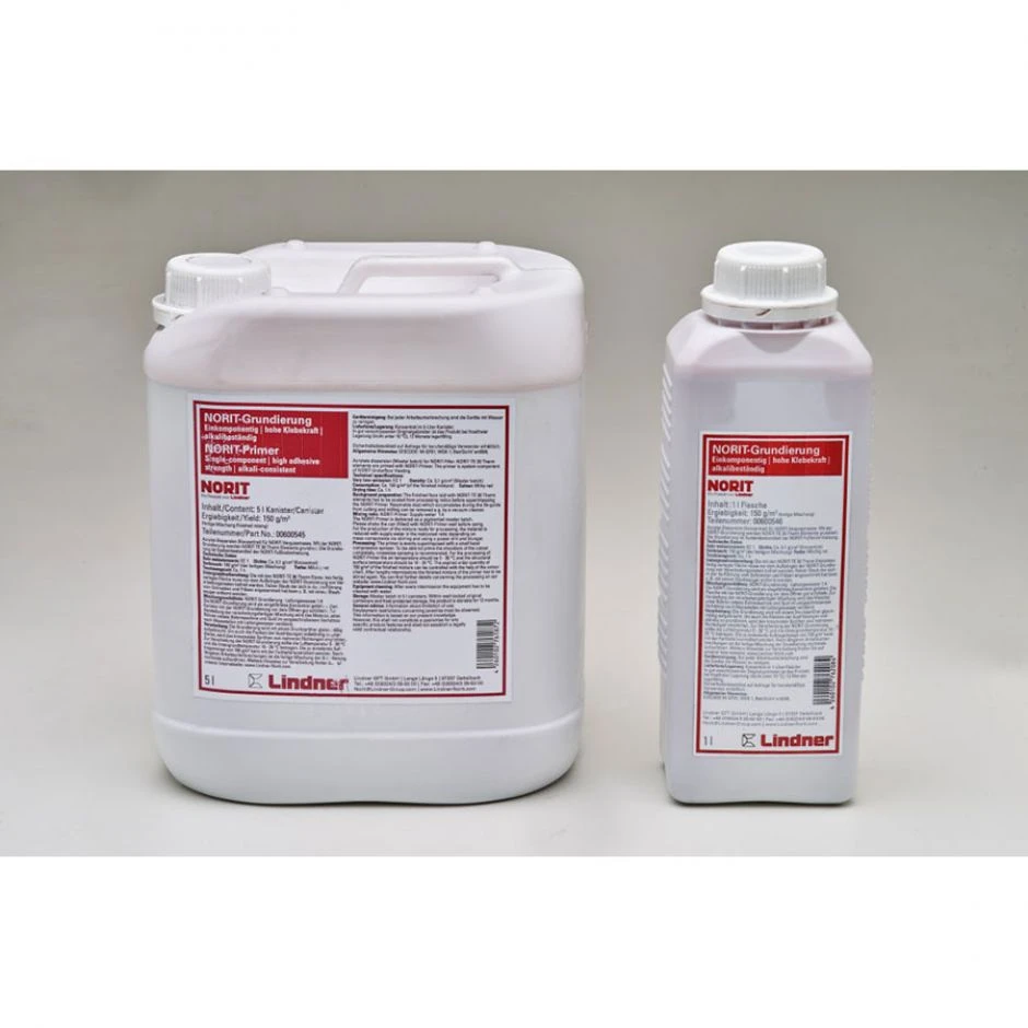 Die NORIT Grundierung ist eine Dipersionsgrundierung. Das Konzentrat ist rot eingefärbt, dass Sie die Auftragsmenge kontrollieren können. Die Grundierung wird mit Wasser im Verhältnis von 1:4 vermischt. Die Reichweite der fertigen Mischung beträgt ca. 150 g/qm und wird mit dem Drucksprüher aufgetragen.