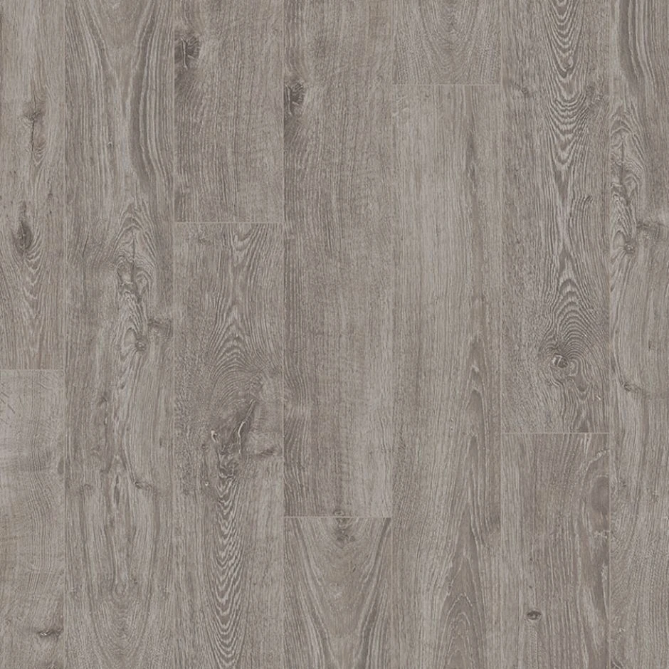 Das Design Eiche lichtgrau ist ein Boden in klassischer 1-Stab Landhausdielen Optik. Die Dielen haben eine Minifase an den Kopf- und Längskanten und immitieren so das Aussehen eines echten Holzdielen-Bodens. Die Dielen sind grau und haben eine kräftige Maserung und Musterung.