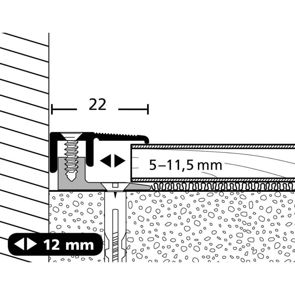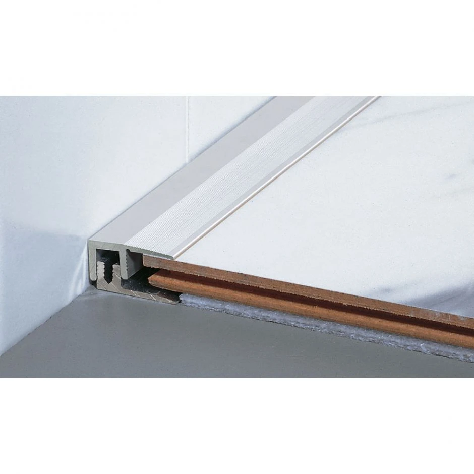 - PARKETTFREUND Abschlussprofil PF 387 TS Alu eloxiert Edelstahl Schraubsystem Abschlussschiene grau