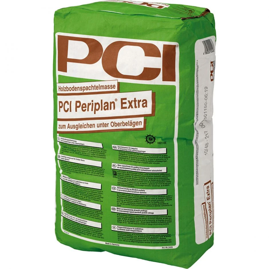 PCI Periplan Extra ist in Säcken zu je 25 kg erhältlich. Der Verbrauch an Trockenmörtel beträgt ca. 1,6 kg/m² und mm Schichtdicke. Die Spachtelmasse eignet sich für Schichtdicken von 3 – 60 mm und muss vor Ort mit Wasser angemischt werden. Daher sollte die Verarbeitungstemperatur über 5°C liegen. Sie ist nach ca. 3 Stunden begehbar und lässt sich nach 24 Stunden mit keramischen und textilen Belägen, nach ca. 3 Tagen mit dampfdichten Belägen und nach ca. 7 Tagen mit Parkett überarbeiten.