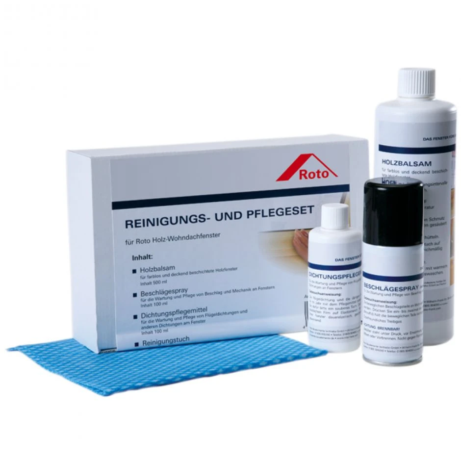 Das Roto Pflgeset beinhaltet alles was Sie benötigen um ihr Holz Fenster zu pflegen um so eine lange Lebensdauer zu garantieren.