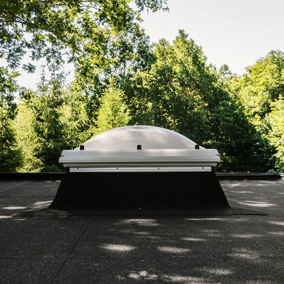 Das VELUX Lichtkuppel Oberelement ISJ 0102 2-schalig für unbeheizten Hallen unter flachen Dächern von 0° bis 15°.