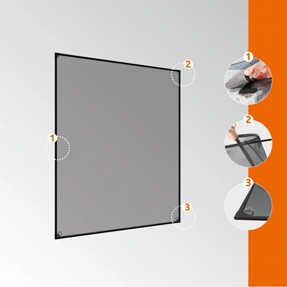 Die Montage erfolgt bohrfrei via selbstklebenden Magnetstreifen, wodurch sich der Insektenschutz auch für Mietwohnungen hervorragend eignet. Die flache Einbautiefe von 9 mm gewährleistet eine Anbringung auch hinter einer Jalousie oder einem Rollladen.